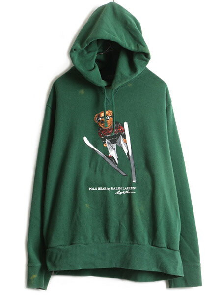 商品詳細 商品番号f-mrd02y21n10 商品名ポロベア ■ POLO ポロ ラルフローレン スキー ジャンプ ビッグプリント 前V スウェット フード パーカー ( メンズ XL ) 古着 緑 スエット 商品説明アメリカで購入したUSED商品です。
